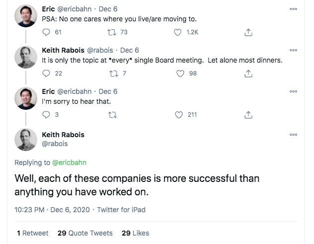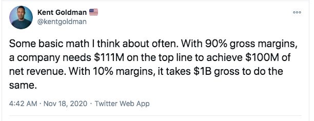 The DoorDash IPO feels like one of those inflection points in modern history. A company that leveraged the pain of other businesses by helping them barely remain viable, after years of questionable practices and loss-making, is now worth $70 billion? Mmmkay. I loved this blog from mid-’20 about the company’s model.